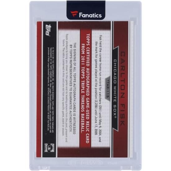 カールトン・フィスク シカゴ・ホワイトソックス 直筆サイン入り 2011 トッププレーヤー トリプル スレーズ ゲーム ユーズド Relic #TTAR-115 #1/18 カードは、メジャーリーグ公認のMLBグッズです。