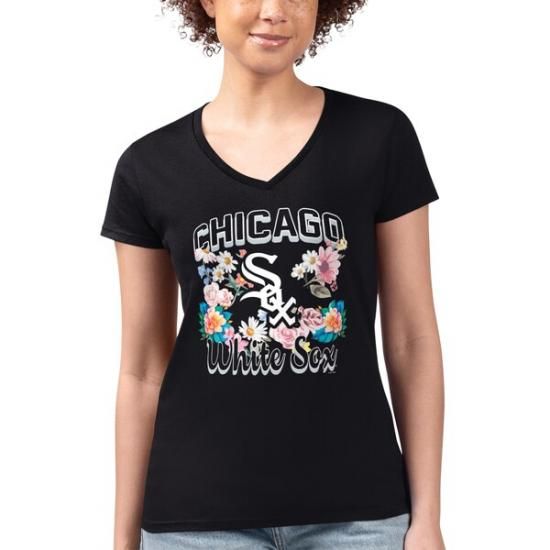 シカゴ・ホワイトソックス G-III 4Her by カール バンクス レディース Super-スリムフィット 軽量 フラワーs グラフィック Vネック Tシャツ - ブラックは、メジャーリーグ公認のMLBグッズです。