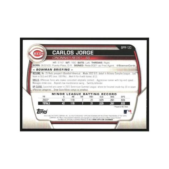 商品説明 2023 リボンman 1st エディション ゴールド #BPPF120 カーlos Jorge RC ルーキー /50は、メジャーリーグ公認のMLBグッズです。