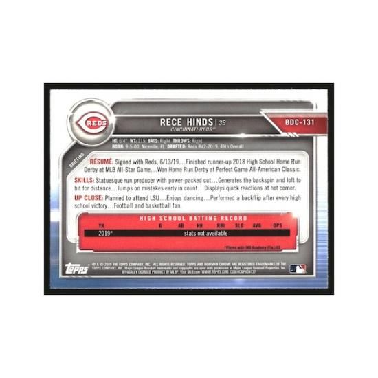 商品説明 2019 リボンman クローム ドラフト Sapphire #BDC131 Rece Hinds RC ルーキーは、メジャーリーグ公認のMLBグッズです。