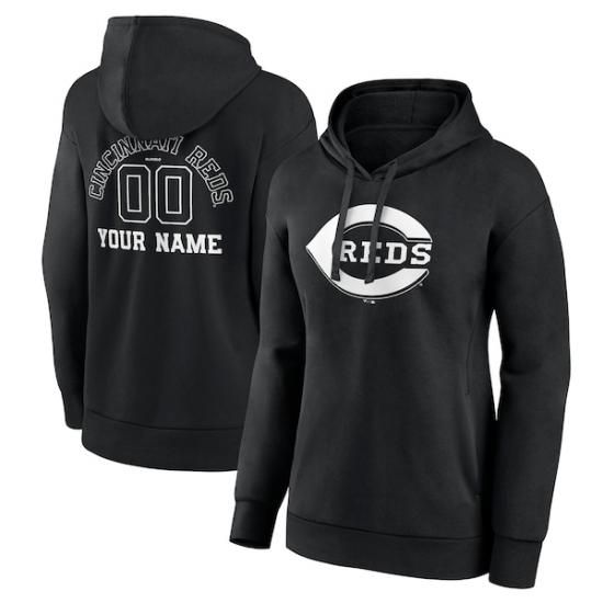 シンシナティ・レッズ レディース Mオンochrome パーソナライズ ネーム&ナンバー プルオーバー パーカー - ブラックは、メジャーリーグ公認のMLBグッズです。