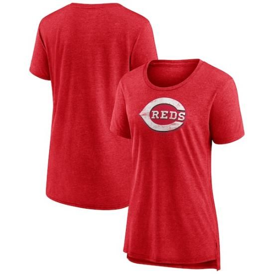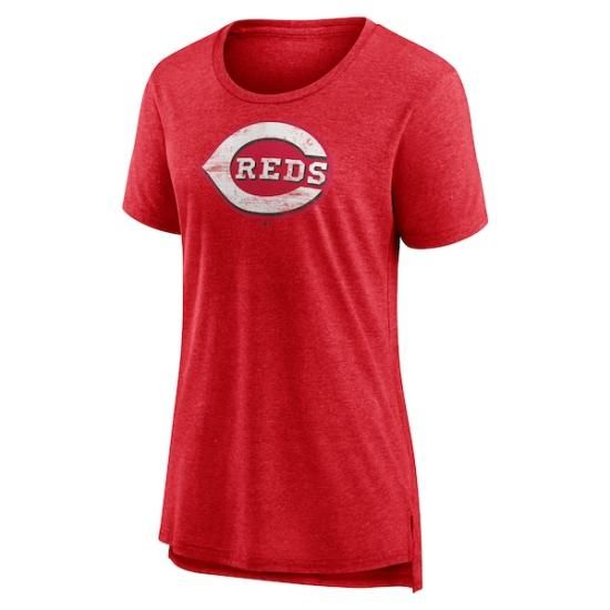 シンシナティ・レッズ レディース ヴィンテージ風 オフィシャル ロゴ トライブレンド Tシャツ - レッドは、メジャーリーグ公認のMLBグッズです。