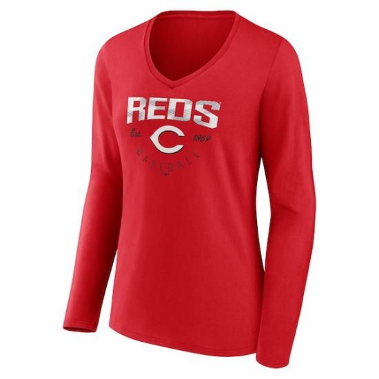 シンシナティ・レッズ レディース Live For It ロングスリーブ ロングスリーブ Vネック