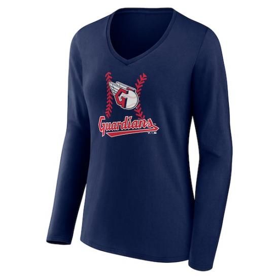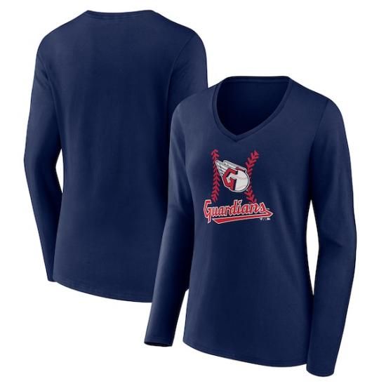 クリーブランド・ガーディアンズ レディース ファストボール ロングスリーブ Vネック Tシャツ - ネイビーは、メジャーリーグ公認のMLBグッズです。