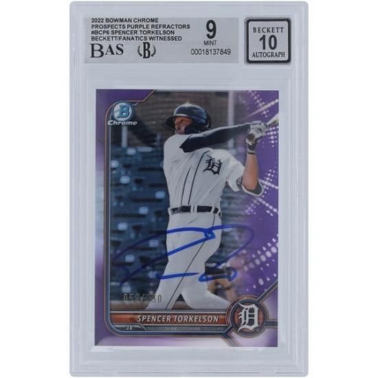 Spencer トゥーrkelsオン デトロイト・タイガース 直筆サイン入り 2022 リボンman クローム プロspects パープル Refracトゥーrs #BCP-6 #/250 Beckett ファナティクス Witnessed オーセンティックアットed 9/10 カードは、メジャーリーグ公認のMLBグッズです。