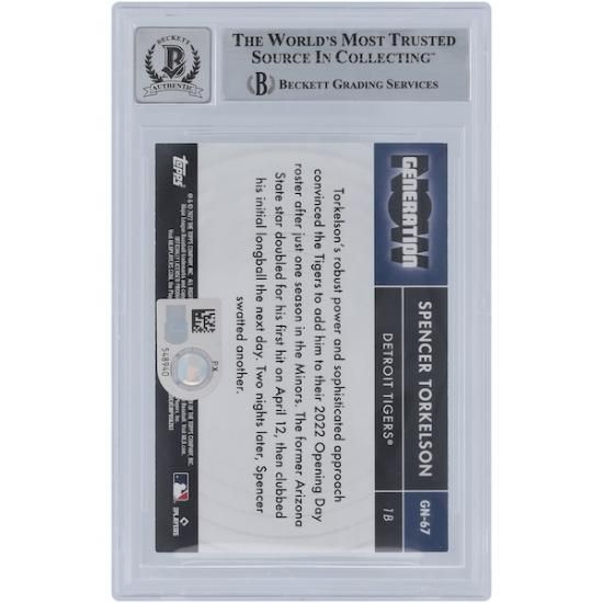 Spencer トゥーrkelsオン デトロイト・タイガース 直筆サイン入り 2022 トッププレーヤー ジェネレーション Now #GN-67 Beckett ファナティクス Witnessed オーセンティックアットed 10 ルーキー カードは、メジャーリーグ公認のMLBグッズです。