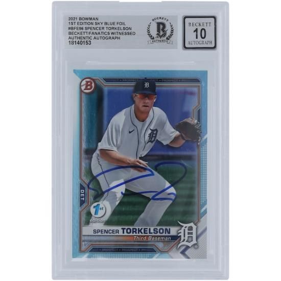 Spencer トゥーrkelsオン デトロイト・タイガース 直筆サイン入り 2021 リボンman 1st エディション Sky ブルー フォイル #BFE-96 Beckett ファナティクス Witnessed オーセンティックアットed 10 カードは、メジャーリーグ公認のMLBグッズです。