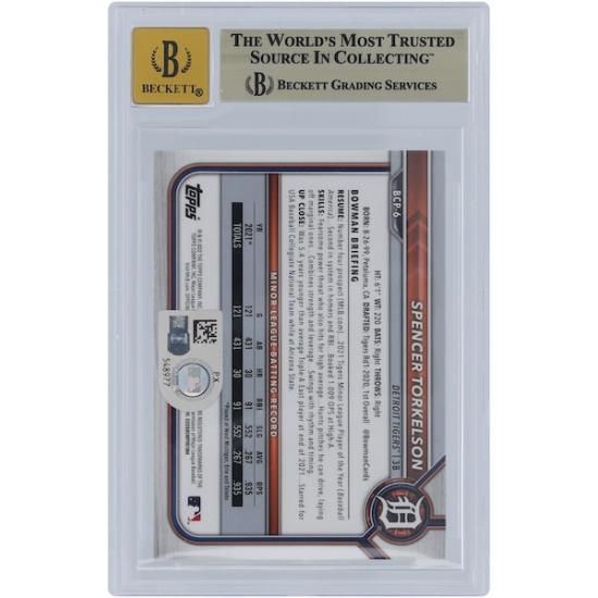 Spencer トゥーrkelsオン デトロイト・タイガース 直筆サイン入り 2022 リボンman クローム Sapphire プロspects #BCP-6 Beckett ファナティクス Witnessed オーセンティックアットed 9.5/10 カードは、メジャーリーグ公認のMLBグッズです。