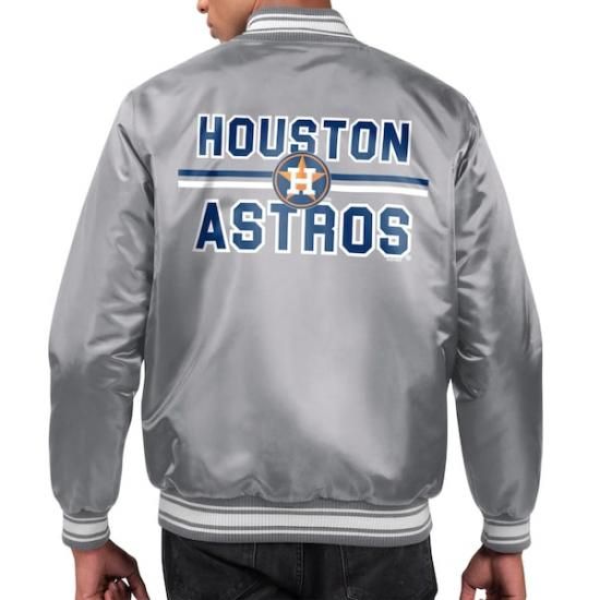 ヒューストン・アストロズ スターター プリント チーム ロゴ サテン ヴィーシティ フル-スナップ ジャケット - グレーは、メジャーリーグ公認のMLBグッズです。