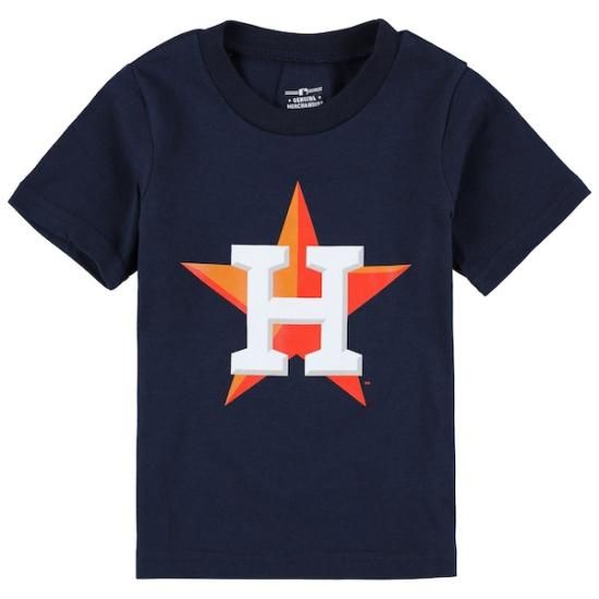 ヒューストン・アストロズ キッズ(歩き始めの子供) チーム クルー プライマリー ロゴ Tシャツ - ネイビーは、メジャーリーグ公認のMLBグッズです。