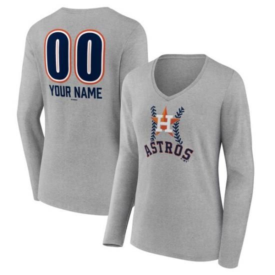 ヒューストン・アストロズ レディース パーソナライズ ネーム&ナンバー ファストボール ロングスリーブ Vネック Tシャツ - グレーは、メジャーリーグ公認のMLBグッズです。