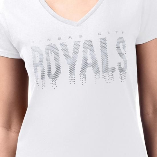 カンザスシティ・ロイヤルズ G-III 4Her by カール バンクス レディース メタリック ドロップ 軽量 Vネック Tシャツ - ホワイトは、メジャーリーグ公認のMLBグッズです。