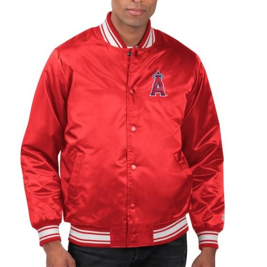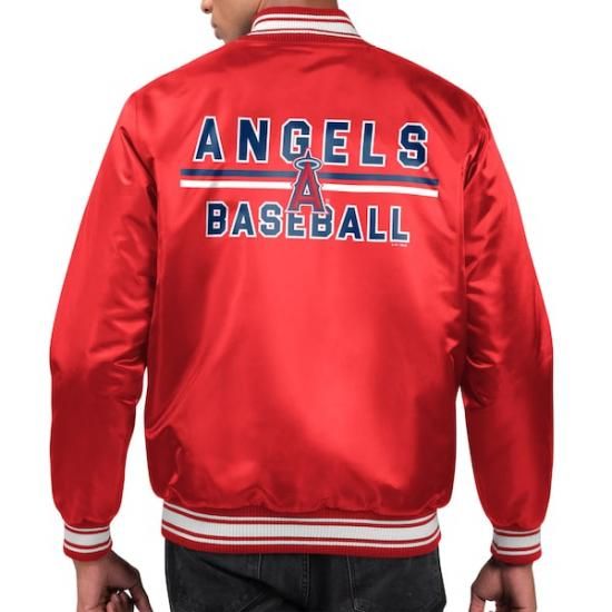 ロサンゼルス・エンゼルス スターター プリント チーム ロゴ サテン ヴィーシティ フル-スナップ ジャケット - レッドは、メジャーリーグ公認のMLBグッズです。
