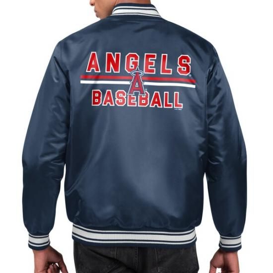 ロサンゼルス・エンゼルス スターター プリント チーム ロゴ サテン ヴィーシティ フル-スナップ ジャケット - ネイビーは、メジャーリーグ公認のMLBグッズです。