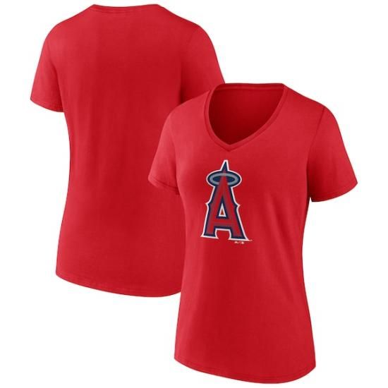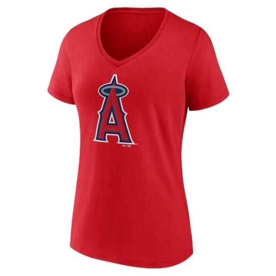 ロサンゼルス・エンゼルス レディース チーム カラー プライマリー ロゴ Vネック Tシャツ - レッドは、メジャーリーグ公認のMLBグッズです。