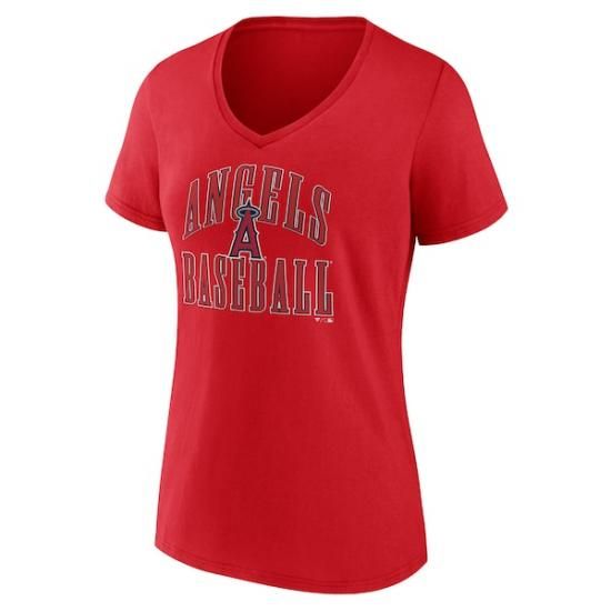 ロサンゼルス・エンゼルス レディース ビクトリー スクリプト Vネック Tシャツ - レッド