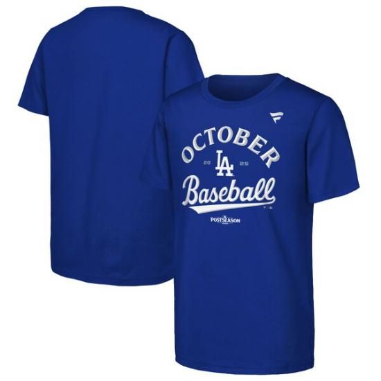 ロサンゼルス・ドジャース ファナティクス ユース 2025 MLB ポストシーズン ロッカー ルーム Tシャツ - ロイヤルは、メジャーリーグ公認のMLBグッズです。