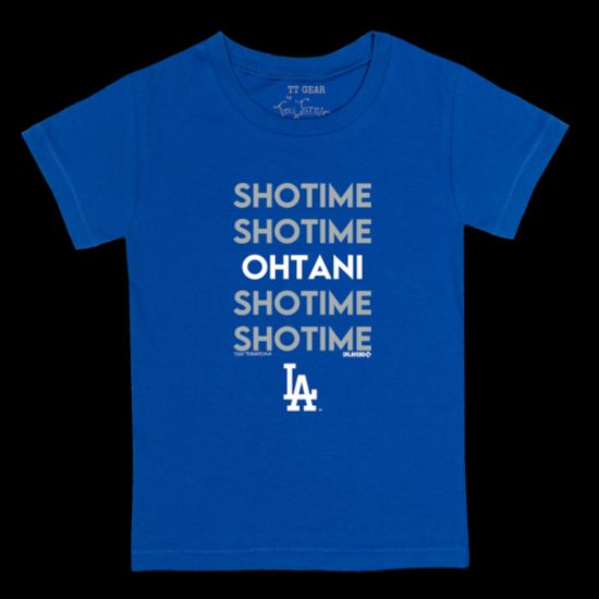 大谷翔平 ロサンゼルス・ドジャース タイニー ターニプ キッズ(歩き始めの子供) Stacked グラフィック Tシャツ - ロイヤルは、メジャーリーグ公認のMLBグッズです。