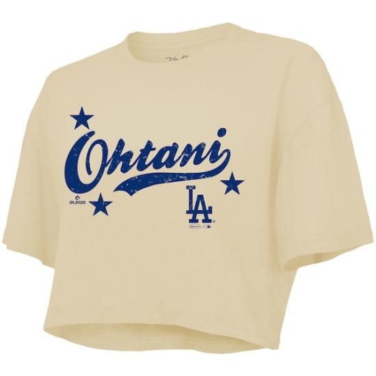 大谷翔平 ロサンゼルス・ドジャース マジェスティック スレーズ レディース ボックスy クロップトップ - クリームは、メジャーリーグ公認のMLBグッズです。