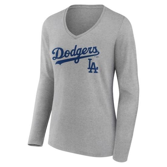 ロサンゼルス・ドジャース レディース チーム ロックup ロングスリーブ Vネック Tシャツ - グ