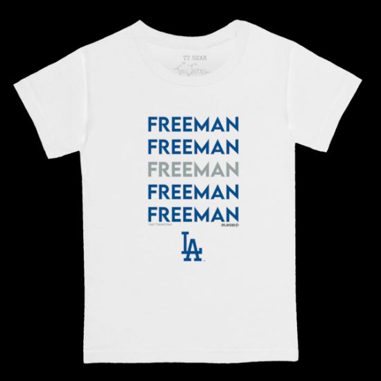 フレディ・フリーマン ロサンゼルス・ドジャース タイニー ターニプ キッズ(歩き始めの子供) Stacked グラフィック Tシャツ - ホワイトは、メジャーリーグ公認のMLBグッズです。