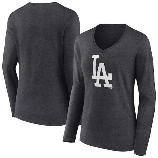 ロサンゼルス・ドジャース レディース モノクロ ロングスリーブ Vネック Tシャツ - チャコールは、メジャーリーグ公認のMLBグッズです。