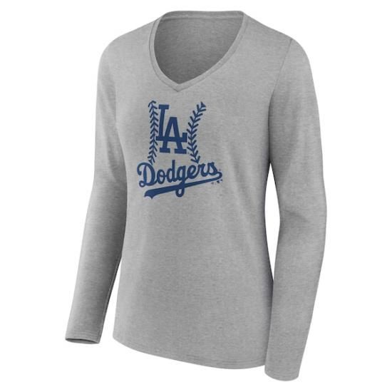 ロサンゼルス・ドジャース レディース パーソナライズ ネーム&ナンバー ファストボール ロングスリーブ Vネック Tシャツ - グレーは、メジャーリーグ公認のMLBグッズです。