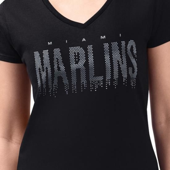 マイアミ・マーリンズ G-III 4Her by カール バンクス レディース メタリック ドロップ 軽量 Vネック Tシャツ - ブラックは、メジャーリーグ公認のMLBグッズです。