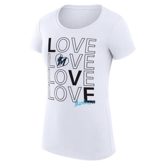 マイアミ・マーリンズ G-III 4Her by カール バンクス レディース Super-スリムフィット 軽量 ラブ グラフィック チーム Tシャツ - ホワイトは、メジャーリーグ公認のMLBグッズです。