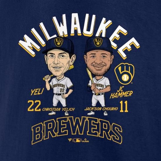 Jacksオン Chourio & クリスチャン・イエリッチ ミルウォーキー・ブルワーズ プレーヤー デュオ Tシャツ - ネイビーは、メジャーリーグ公認のMLBグッズです。