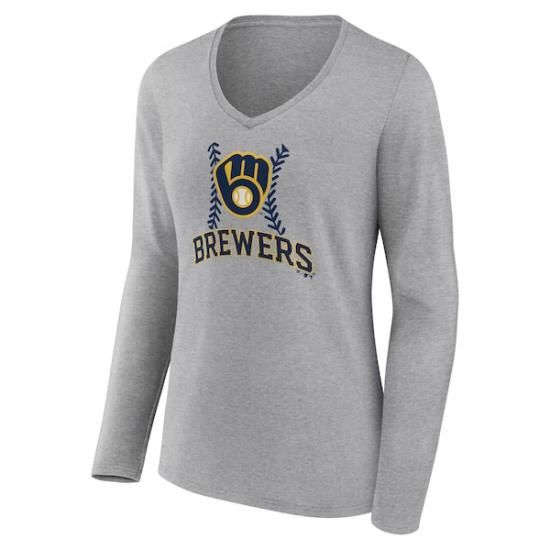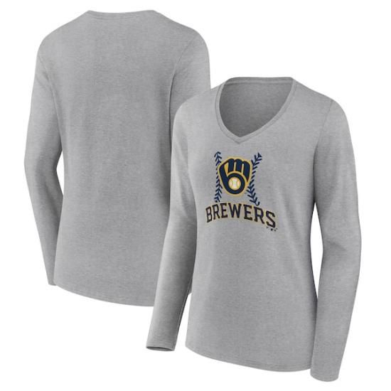 ミルウォーキー・ブルワーズ レディース ファストボール ロングスリーブ Vネック Tシャツ - グレ