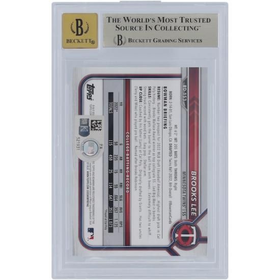 Brooks Lee ミネソタ・ツインズ 直筆サイン入り 2022 リボンman ドラフト 1st エディション #BD-153 Beckett ファナティクス Witnessed オーセンティックアットed 9.5/10 カードは、メジャーリーグ公認のMLBグッズです。