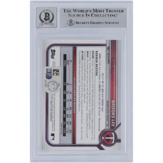 Brooks Lee ミネソタ・ツインズ 直筆サイン入り 2022 リボンman ドラフト 1st エディション #BD-153 Beckett ファナティクス Witnessed オーセンティックアットed 9/10 カードは、メジャーリーグ公認のMLBグッズです。