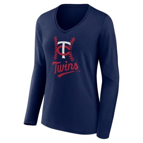 ミネソタ・ツインズ レディース パーソナライズ ネーム&ナンバー ファストボール ロングスリーブ Vネック Tシャツ - ネイビーは、メジャーリーグ公認のMLBグッズです。