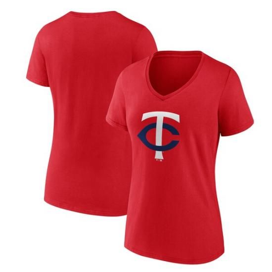 ミネソタ・ツインズ レディース セカンダリー カラー プライマリー ロゴ Tシャツ - レッドは、メジャーリーグ公認のMLBグッズです。