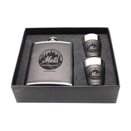 ニューヨーク・メッツ 3点 レザー Flask & ショットグラス セットは、メジャーリーグ公認のMLBグッズです。
