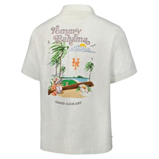 ニューヨーク・メッツ トゥーmmy Bahama グランド Slam Bay キャンプ ボタン-アップ シャツ - ホワイトは、メジャーリーグ公認のMLBグッズです。