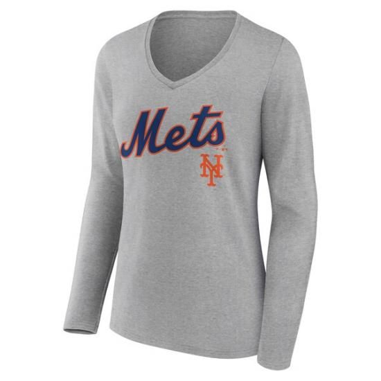 ニューヨーク・メッツ レディース チーム ロックup ロングスリーブ Vネック Tシャツ - グレーは、メジャーリーグ公認のMLBグッズです。