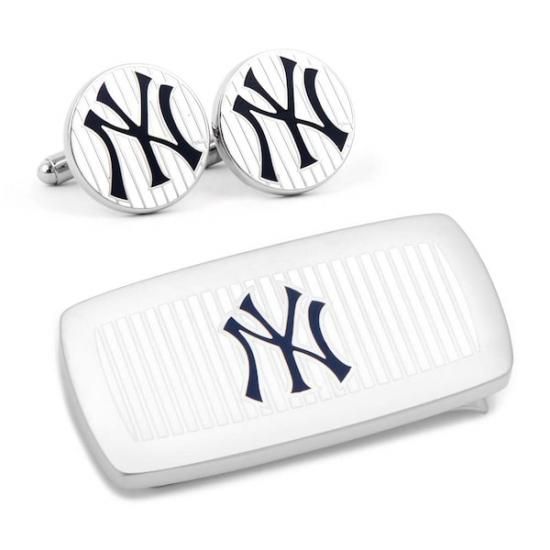 ニューヨーク・ヤンキース カフリンクス & クッション マネー クリップ ギフト セット - ホワイトは、メジャーリーグ公認のMLBグッズです。