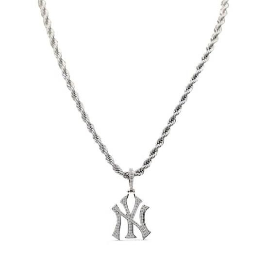 ニューヨーク・ヤンキース GLD 14K ホワイト ゴールド ロゴ ペンダント & 20" ロープ