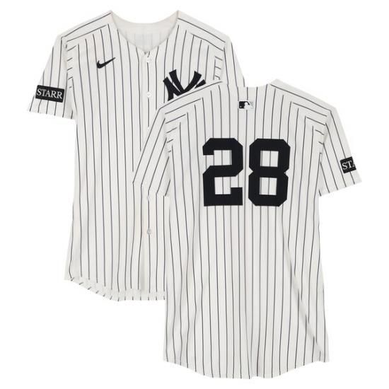 Austin Wells ニューヨーク・ヤンキース ファナティクス オーセンティック プレーヤー-Worn #28 ホワイト ピンストライプ Nike ユニフォーム vs. タンパベイ・レイズ オン July 31, 2025 は、メジャーリーグ公認のMLBグッズです。