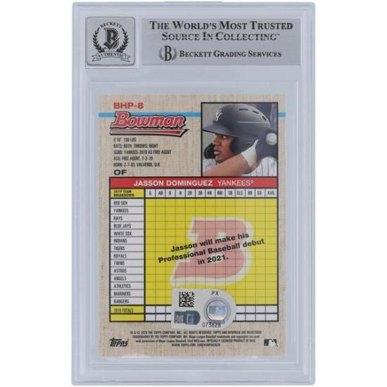 Jassオン Dominguez ニューヨーク・ヤンキース 直筆サイン入り 2020 リボンman プロspects ヘリテージ #BHP-8 Beckett ファナティクス Witnessed オーセンティックアットed 9/10 カードは、メジャーリーグ公認のMLBグッズです。