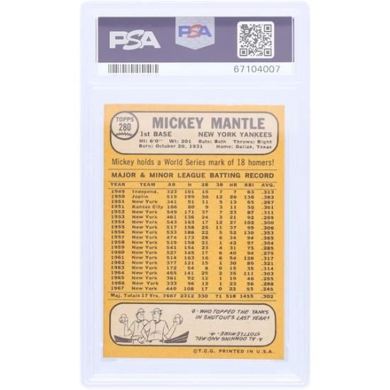 ミッキー・マントル ニューヨーク・ヤンキース 1968 トッププレーヤー #280 PSA オーセン