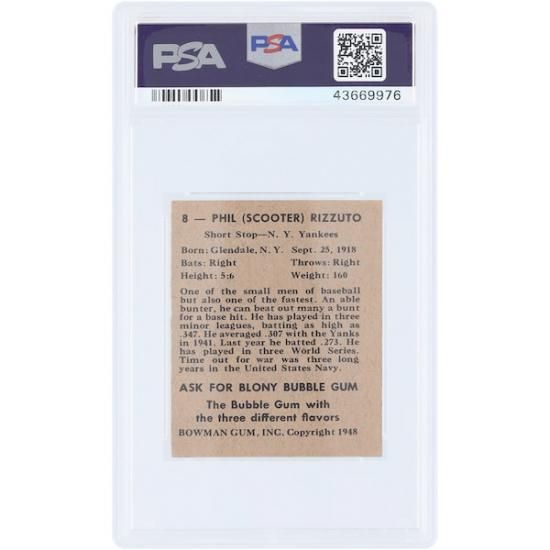 フィル・リズート ニューヨーク・ヤンキース 1948 リボンman #8 PSA オーセンティックア