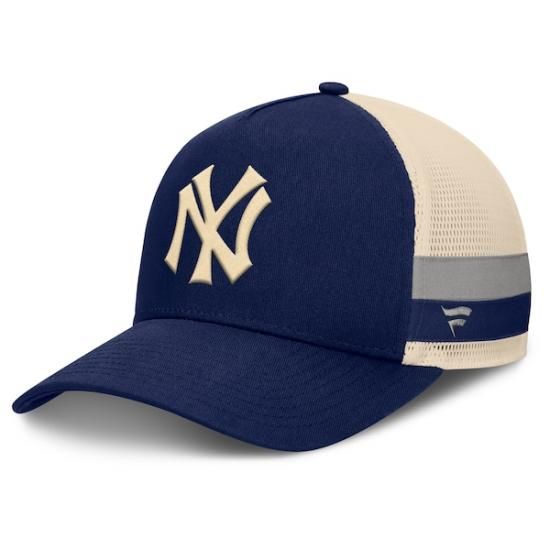 ニューヨーク・ヤンキース ファナティクス Inherited サイド ストライプ トラッカー 調節可能 ハット - ネイビー/ナチュラルは、メジャーリーグ公認のMLBグッズです。