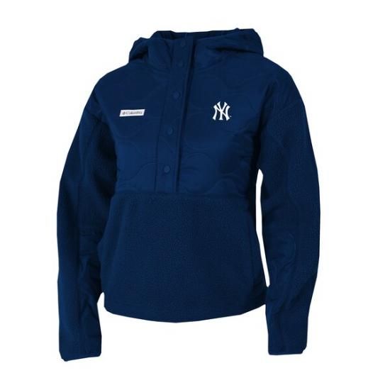 ニューヨーク・ヤンキース コロンビア レディース Cloud Point フード付き フリース ハーフスナップ プルオーバー ジャケット - ネイビーは、メジャーリーグ公認のMLBグッズです。