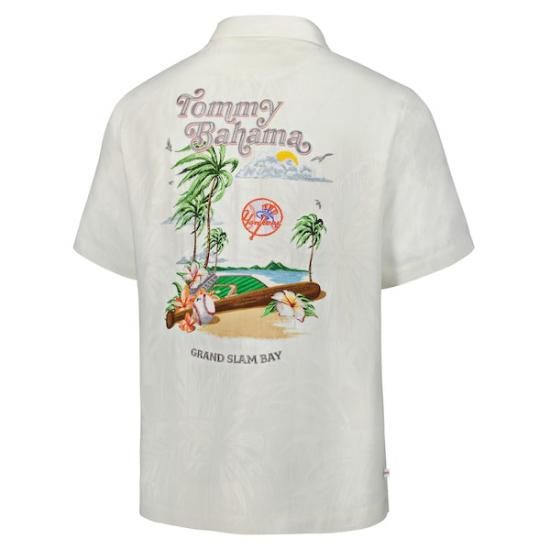ニューヨーク・ヤンキース トゥーmmy Bahama クーパーズタウン コレクション グランド Slam Bay キャンプ ボタン-アップ シルク シャツ - クリームは、メジャーリーグ公認のMLBグッズです。
