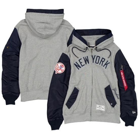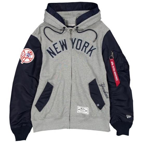 ニューヨーク・ヤンキース New Era(ニューエラ) x Alpha Industries フル-ジップ パーカー ジャケット - ヘザー グレー/ネイビーは、メジャーリーグ公認のMLBグッズです。