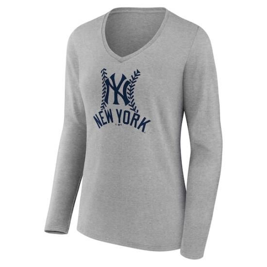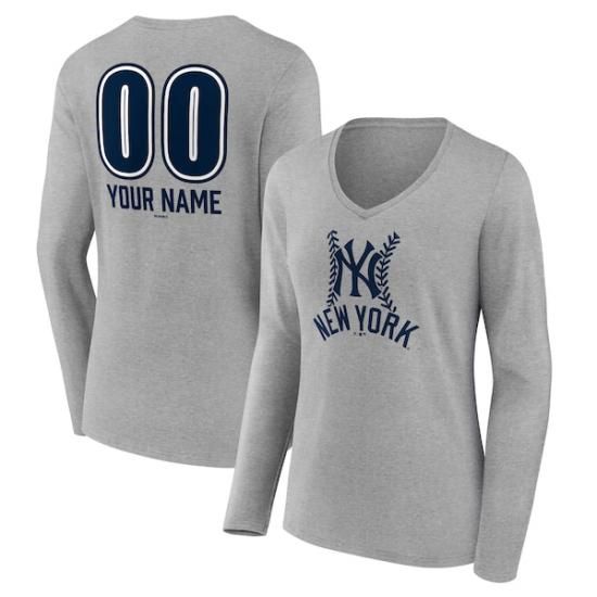 ニューヨーク・ヤンキース レディース パーソナライズ ネーム&ナンバー ファストボール ロングスリーブ Vネック Tシャツ - グレーは、メジャーリーグ公認のMLBグッズです。