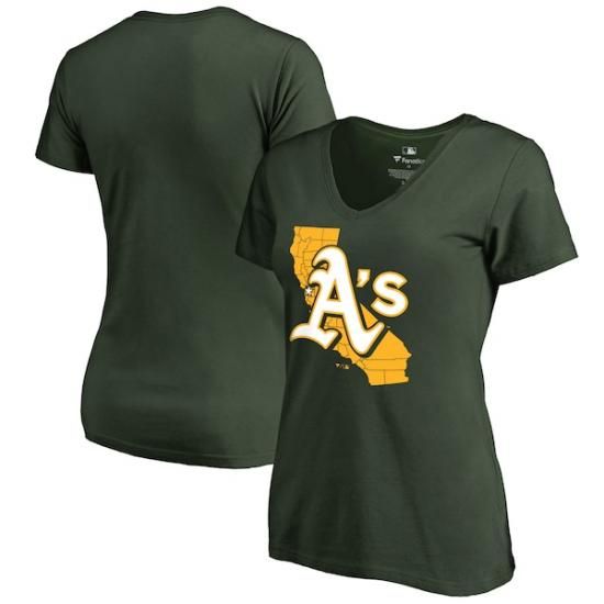 アスレチックス レディース ホームタウン コレクション ザ ビッグ O Vネック Tシャツ - グリーンは、メジャーリーグ公認のMLBグッズです。